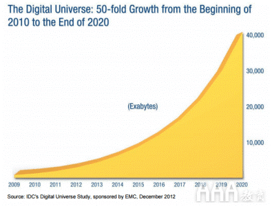 出于多种原因,地球上的数据量呈指数增长。各种来源和我们的日常活动都会产生大量数据。随着网络的发明,整个世界已经联机,我们所做的每一件事都留下了数字痕迹。随着智能对象上线,数据增长率迅速提高。大数据分析的主要来源是社交媒体站点,传感器网络,数字图像/视频,手机,购买交易记录,Web日志,病历,档案,军事监视,电子商务,复杂的科学研究等。所有这些信息总计约五百亿字节的数据。到2020年,数据量将达到40 ZB,相当于将地球上每一个沙粒的总和乘以75。
