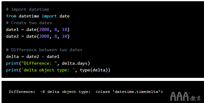 由于此数学运算的结果是一个 持续时间,因此当我们从另一个日期减去一个日期时产生的对象将是一个 timedelta 对象。