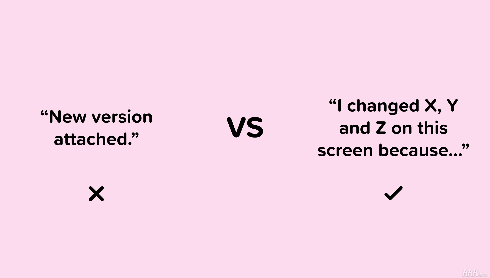 我们还需要在演讲时做好准备,以证明我们的工作合理。当我们对设计进行了大刀阔斧的更改或有新的想法要分享时,准备一些要点来捍卫我们的决策并解释我们为什么朝着正确的方向前进总是很有用的。