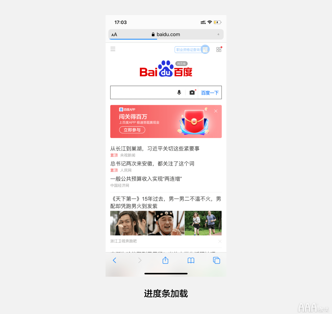 如果加载耗时比较久,可以选用进度条加载来告知用户需要等待的时间,让用户有一定的心理准备,如下图,